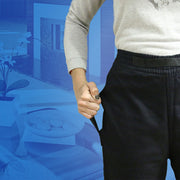 Heavy duty nylon handles sewn into the pants and the liner to prevent falls and injuries to mobility challenged individuals.